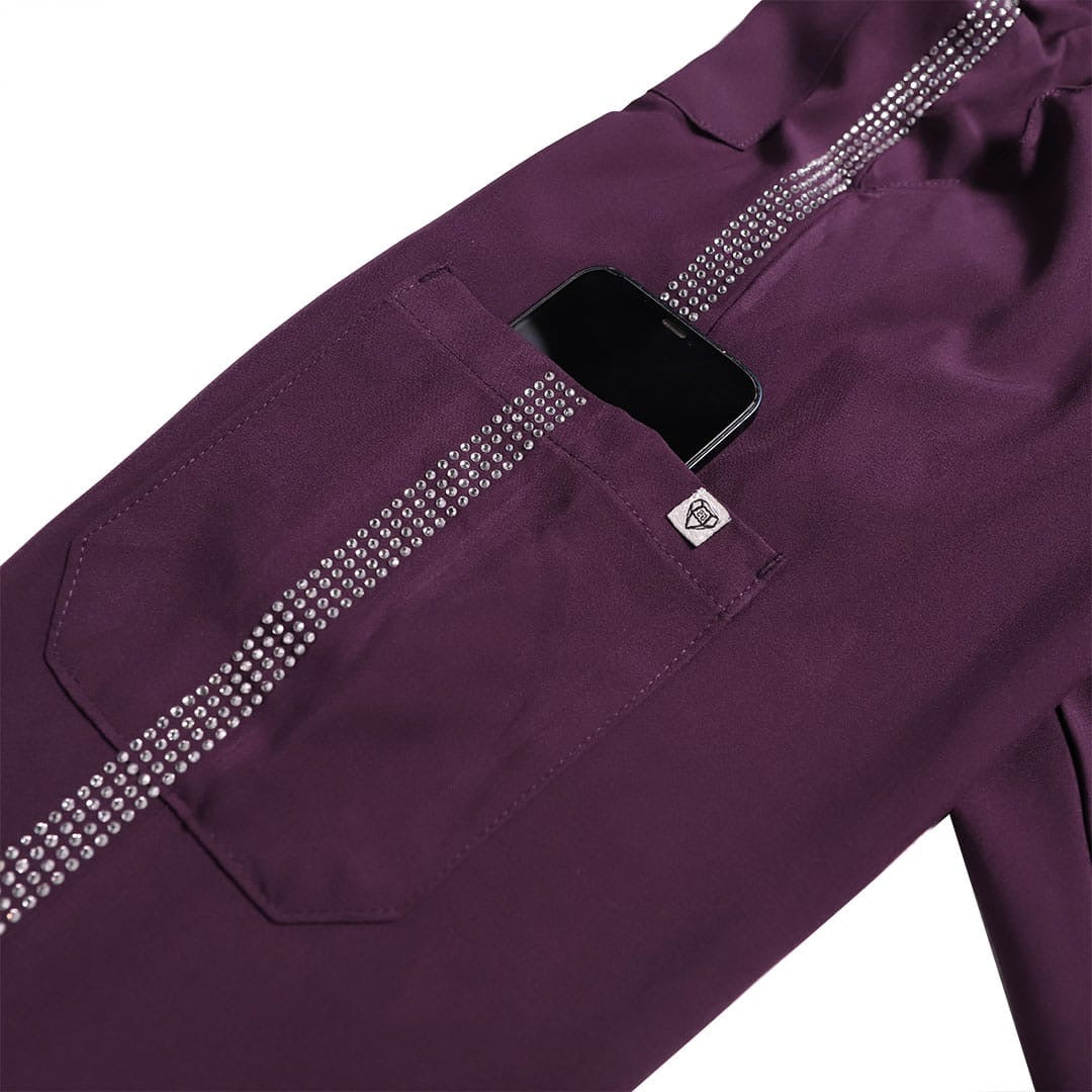 Our “GET GLAM 2.0 Bottom” (2024 Edition) is our upgraded version. MORE BLING ‼️ MORE SHINE ‼️ The bottom features Swarovski crystals detailing down both sides of the legs for an ultimate shine. You'll definitely leave a little SPARKLE wherever you go. It is made of 74/23/3 poly/rayon/spandex twill. The material is very comfortable, stretchy, and form fitting.